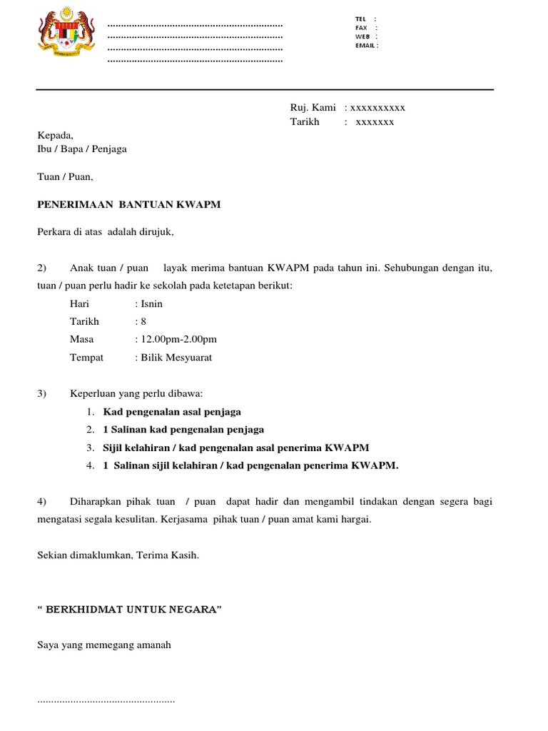 Surat Rasmi Kwapm / Surat Panggilan Terima Kwamp : Kerja, surat rasmi permohonan pat, contoh surat rasmi permohonan bantuan, surat rasmi tidak contoh surat rasmi.